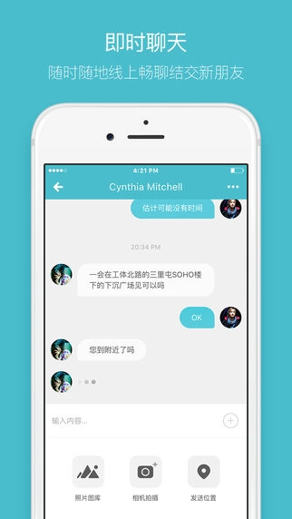 4、「聊天升级」,信息收发更加流畅,还支持发送图片与位置,方便小伙伴们交流。