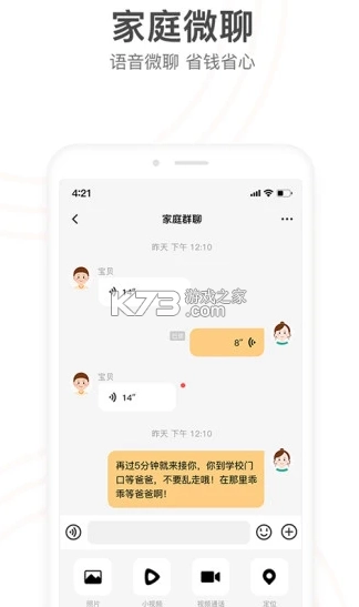 手表和app之间可以相互发送语音信息,实现孩子与家长之间一种新的沟通方式。除此之外,app端还可以发送微聊文本给手表,微聊沟通多样化。