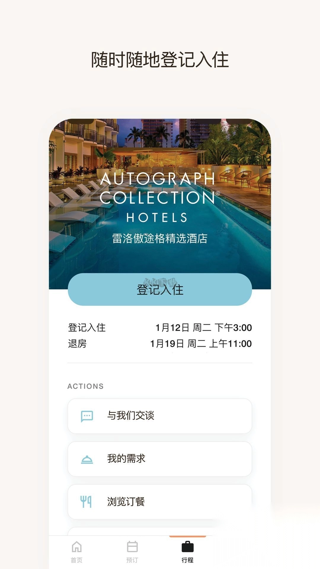 1、手机办理入住/退房:在抵达前48小时可进行入住预登记。借助APP能轻松完成退房,让您启程更为快捷。