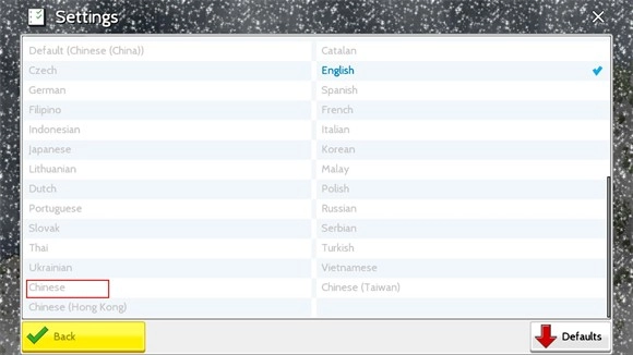 4、然后在选项栏里选择Chinese就可以切换成中文了。