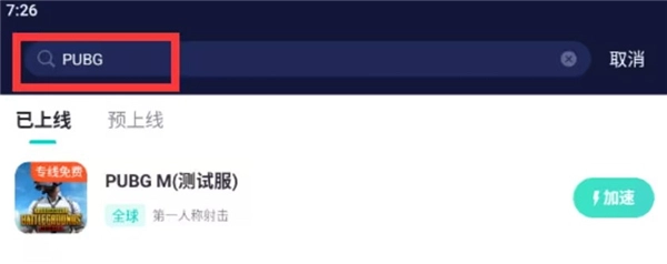 游玩时在提su工具中搜索 “PUBG Mobile”进行提su ,就能以稳定的网络连接游玩。