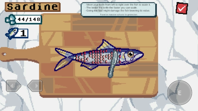 3、把你刚捕到的鱼带到沙丁鱼站,在那里你可以给刚捕到的鱼刮鱼鳞。一旦刮完鱼鳞,按下右上角的按钮完成操作!