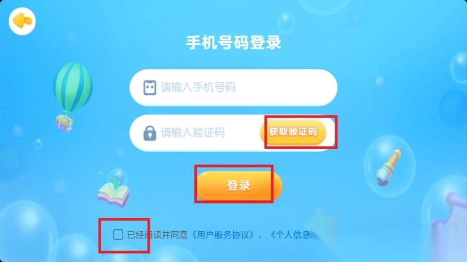 首先输入手机号码,接着点击“获取验证码”按钮,待收到验证码后进行填写,随后勾选用户协议,最后点击“登录”按钮。