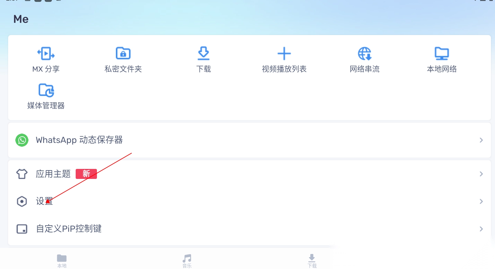 2、点击设置
