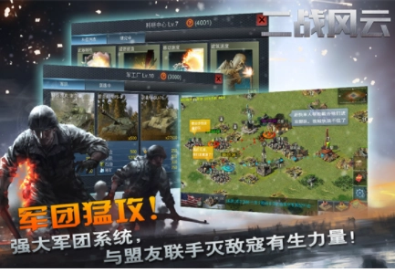 《二战风云》是一款以二战为主题的社交战略类网络游戏。其游戏画面逼真且细腻,交互体验清晰又有力,能将玩家带入热血激昂的二战时期。该游戏依托第二次世界大战的背景,融合了城市建设、资源管理、军队组建、军团培养等多种玩法,让您充分施展策略、较量智谋,最终缔造一个专属于您的强大帝国。在首次重大改版中,特别推出个人免费加速与军团协助功能,助力您快速发展。无论是在城内指挥作战,还是于城外一决胜负,不同玩法皆能带来同样的激情。全球有3500万二战题材游戏玩家同场竞技,期待您的加入!