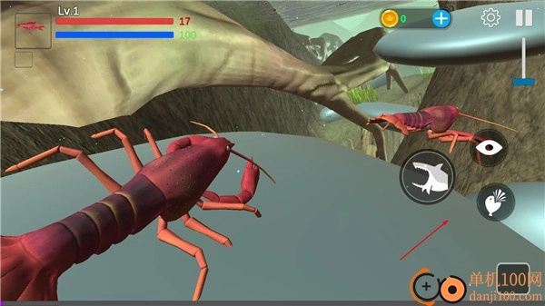 5、游戏玩法简便,游戏界面会显示多个按钮,玩家能够操控角色在海洋中移动,还可以攻击其他鱼类。
