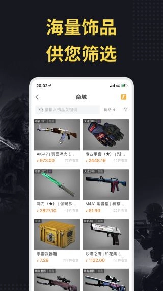C5Game堪称一款极为出色的Steam游戏饰品交易平台。该平台对CSGO、DOTA2、H1Z1、军团要塞2等Steam热门游戏的皮肤交易均予以支持,提供琳琅满目的饰品交易物品。凭借先进技术,实现玩家游戏装备自动化线上交易,同时采用独家风控体系,并与智能交易系统相结合,保障玩家能够购买到心仪的游戏饰品及道具。感兴趣的朋友们,赶紧来下载体验吧!