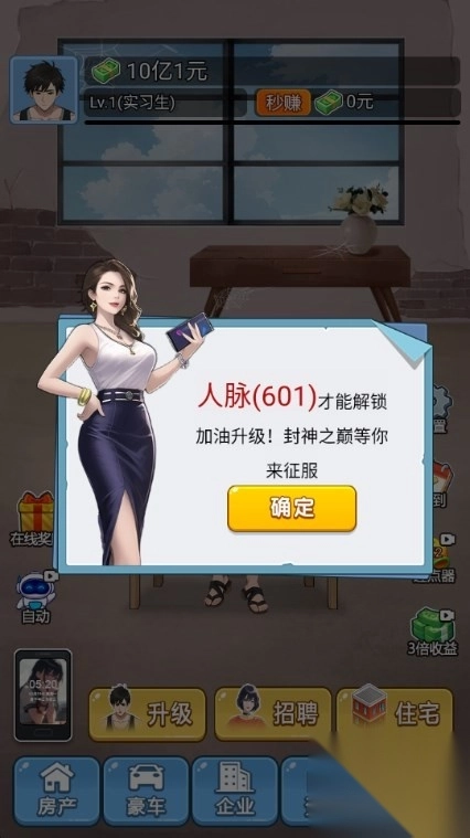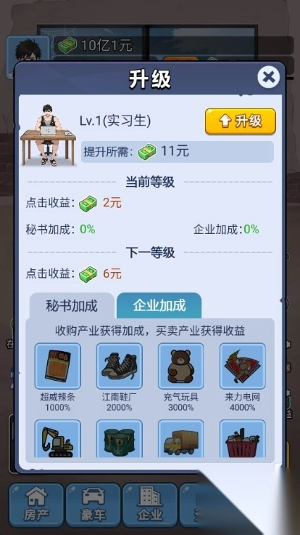 3、游戏中,玩家能够看到房产、豪车、企业、资产、人脉等诸多不同功能。