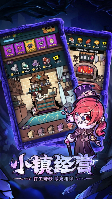 在小镇中打造满足英雄们生活所需的各类场所,借此赚取丰厚金币。同时,依靠交易所回收魔物掉落的材料,用以制作神装,以此激发英雄们进行 “消费”,实现自我养成。如此一来,小镇的GDP节节攀升,英雄们的实力也会愈发强大!
