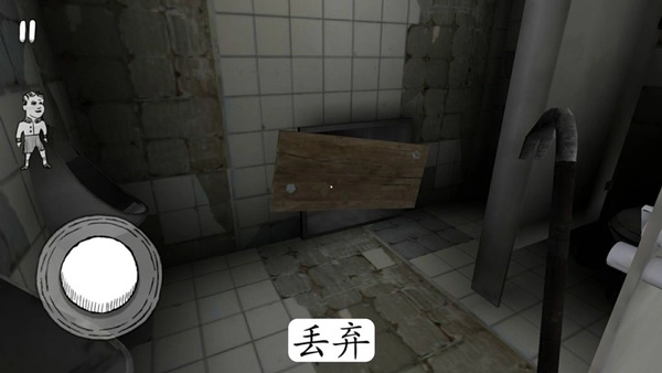 3、屏幕右下角是控制角色移动的操控摇杆,其上方的小人用于控制角色蹲起。屏幕正中间有个小白点,通过滑动屏幕,借助它能实现拿道具、开门等操作。当小白点停留在可拿起的道具上,屏幕右侧会出现一只白手,点击就能拿起道具。拿起物品后,屏幕下方会出现丢弃图标,不想使用该物品时,点击丢弃即可。切换新物品时,手中的旧物品会自动掉落地上。