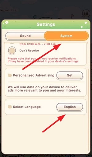3、接着选择system功能,向下滑动,找到language功能,在右侧选择english。
