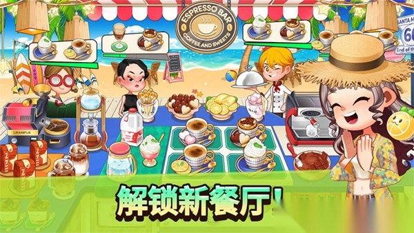 2、在经营过程中制作料理并服务好顾客,达成关卡目标后,便能解锁新的美味食材与食谱。