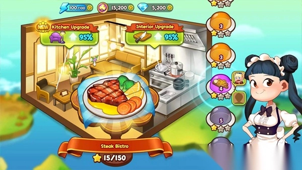 首先,对少量物品(如锅、盘子)进行数量升级。接着,适度提升价格与小费(主要原料最终需升至满级)。最后,对营业时间和等待时间进行升级(升一到两次即可)。手速较慢的人,不要先升级时间,毕竟价格未达要求,即便升级时间也无法获得星星,还是得着重练习手速。