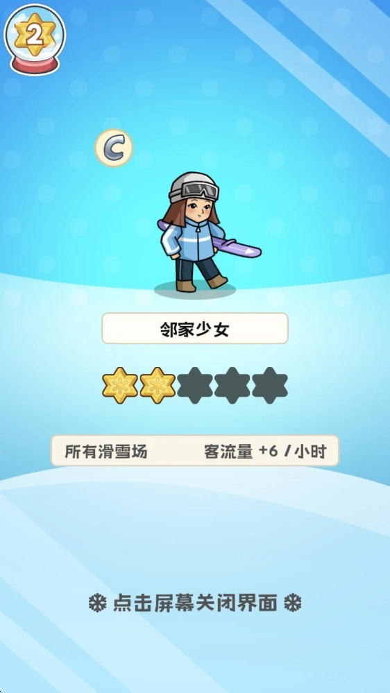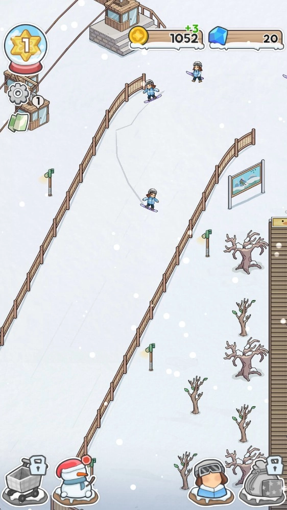 1当你进入游戏,首先映入眼帘的便是初始的滑雪场,滑雪场的门口会持续不断地有客人出现。