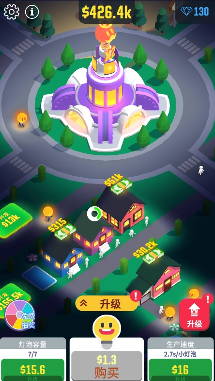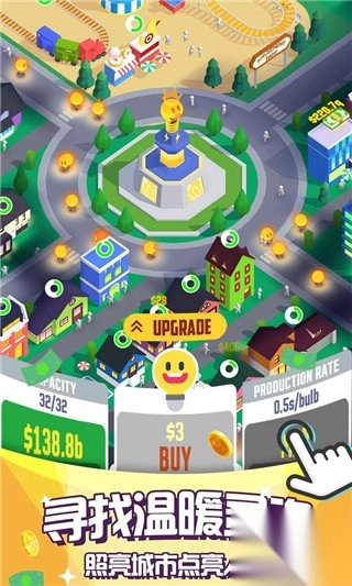 2、升级城市的建筑容量,解锁更多灯泡小人加入冒险。