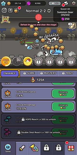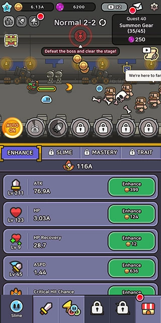3、史莱姆传奇游戏充斥大量的关卡和boss,战胜他们才能提升自己。
