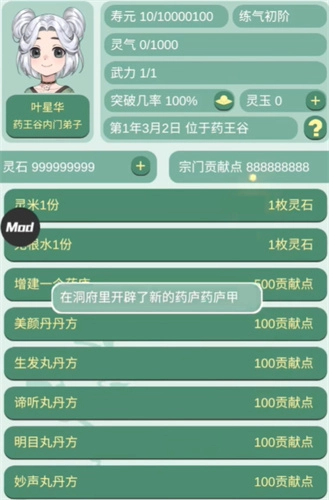 3、你不但能够修仙,还能研习各类技能,增添恋爱故事。