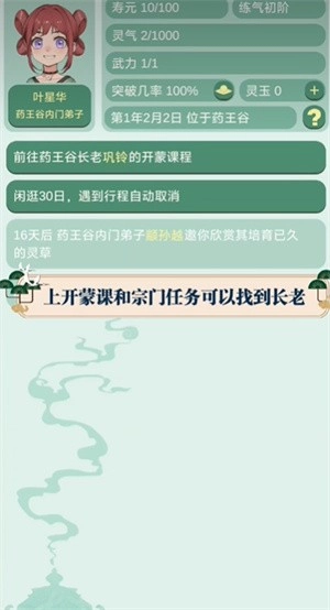 2. 开局指引你的师姐师兄,均为师傅的弟子,点击他们即可找到谷主。