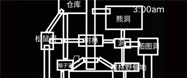 松鼠的行动路线依次为仓库、卧室、厕所、厨房。监控只需关注树洞、卧室以及厕所即可。要是在查看监控时,在卧室和厨房都没发现松鼠的踪迹,那就回过头查看厨房(要是没时间看监控,也需随时回头查看)。
