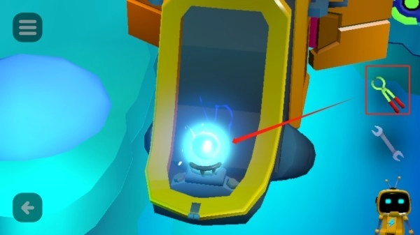 1、来到飞车正前方,点击将盖子掀开,用钳子将能量球夹起