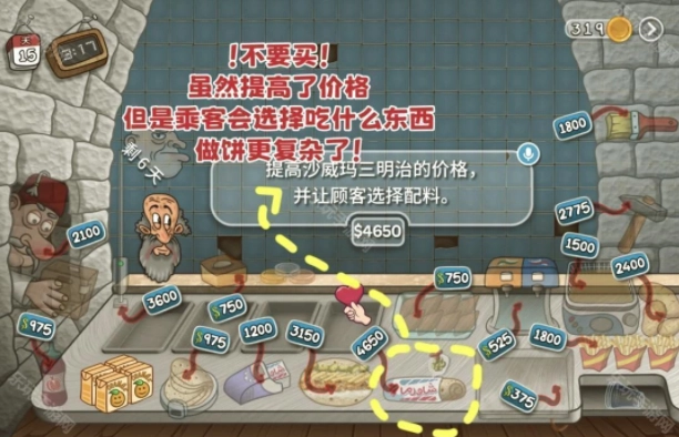 不要过早考虑提升三明治价格。虽然提价能增加利润,但顾客可能不再选择购买,客流量下降会大幅减缓你的升级速度。