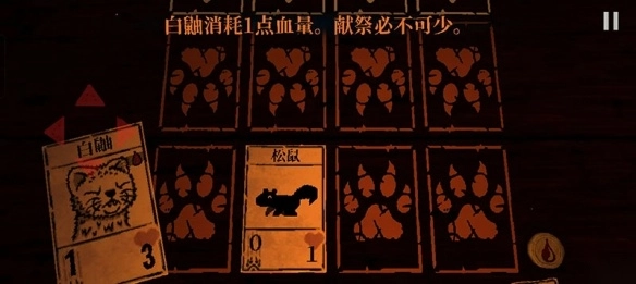 3、因此,在打出“白鼬”牌之前,玩家需要先献祭一张“松鼠”牌。