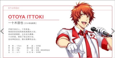 1、一十木音也:开朗亲和,热爱唱歌,努力立志成为偶像,非常积极。