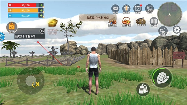 4、优先建造基础营地:收集木材与石料后搭建简易住所,避免夜晚野兽袭击。