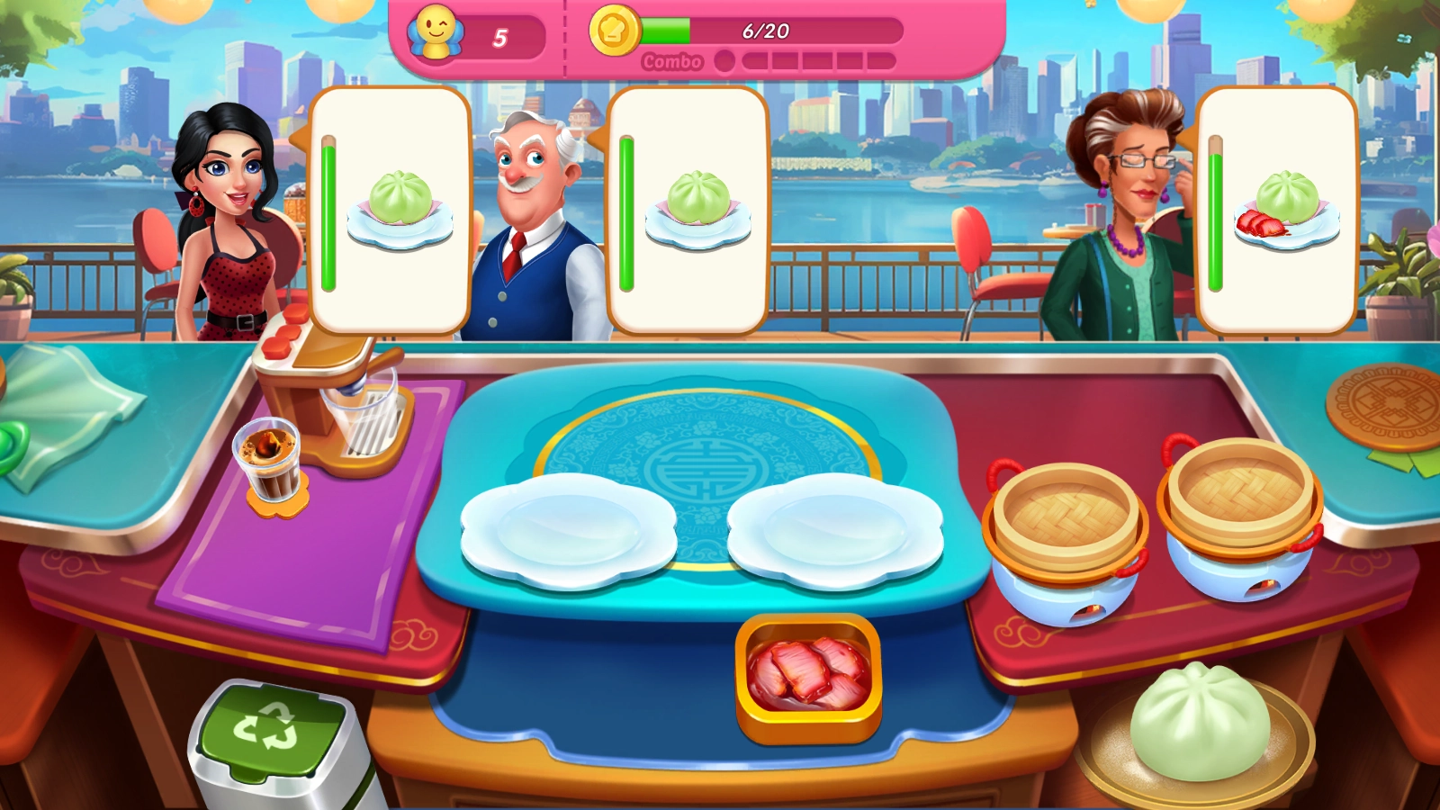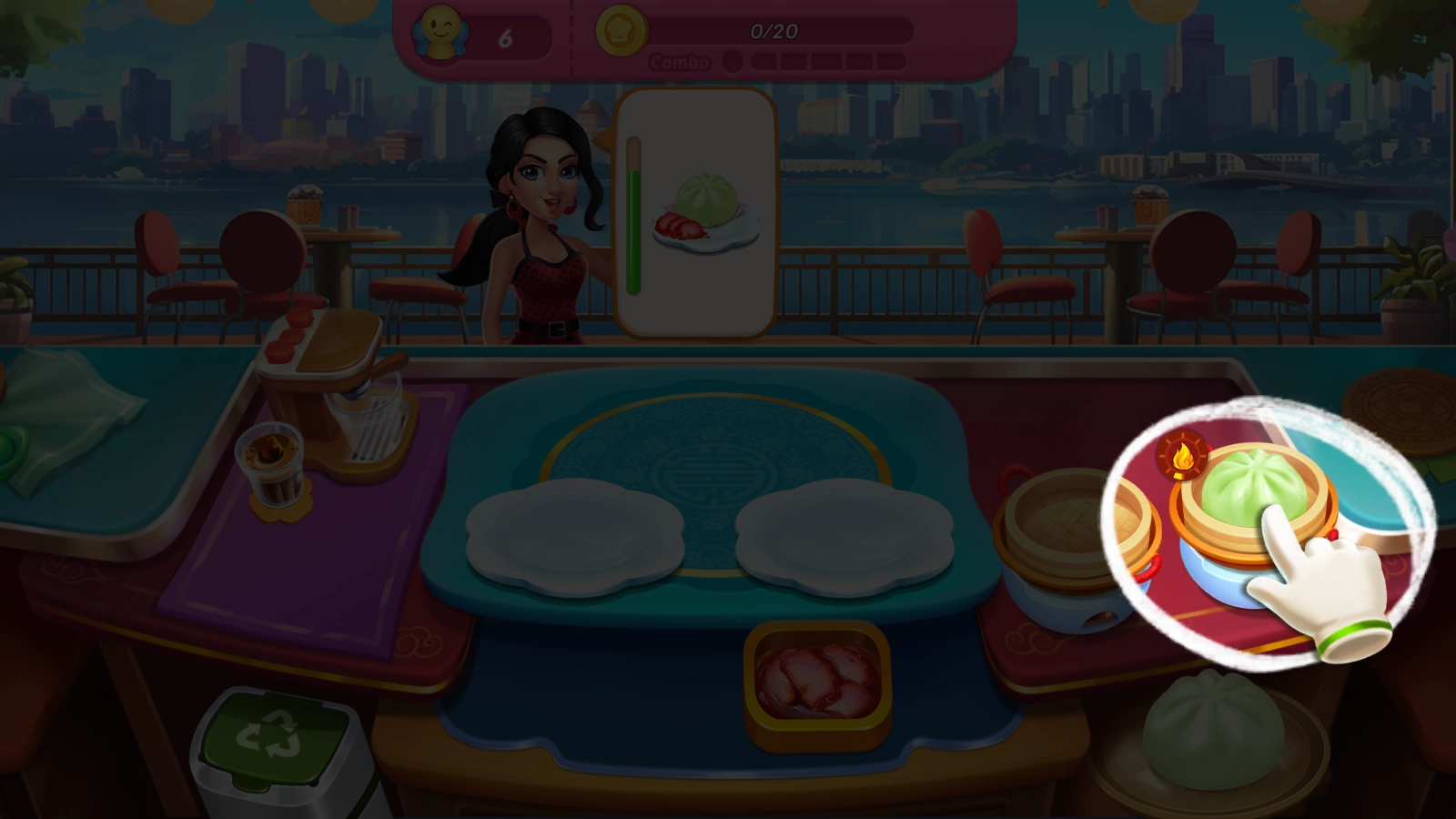 2.点击相应的食材包子会自动放入蒸笼里,时间到了后点击就可将其拿出。