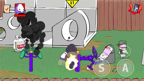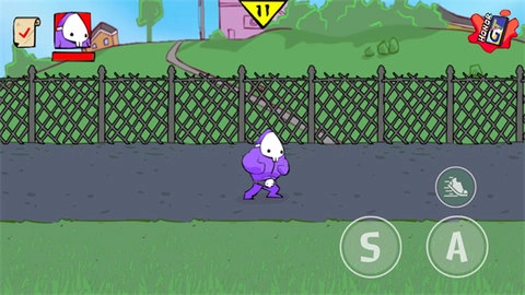 2、正式开始后,左侧用于控制角色移动,右侧的A键对应轻拳,S键对应重拳,鞋子图案则代表疾跑。