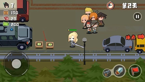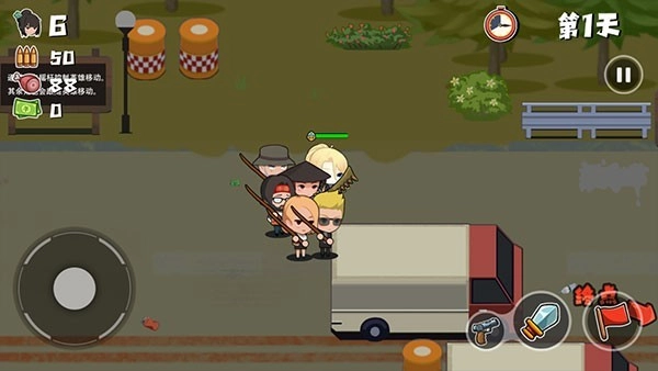 4、遇到僵尸,可以进入室内可以搜刮大量的物资,也可以躲避黑夜强化的僵尸,靠近僵尸角色会自动攻击。