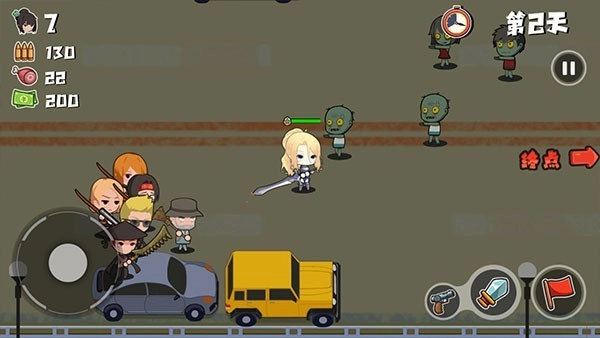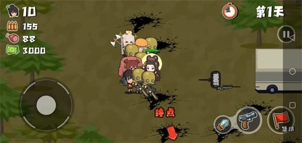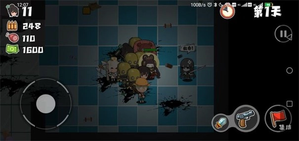 2、在屏幕左下角设有方向键,通过它能够操控你的老婆队长在场景中移动至任意地点。而在屏幕右下角,分别排列着枪、剑武器按钮以及集合按钮。当你按住集合按钮时,便能强制角色跟随英雄行动。