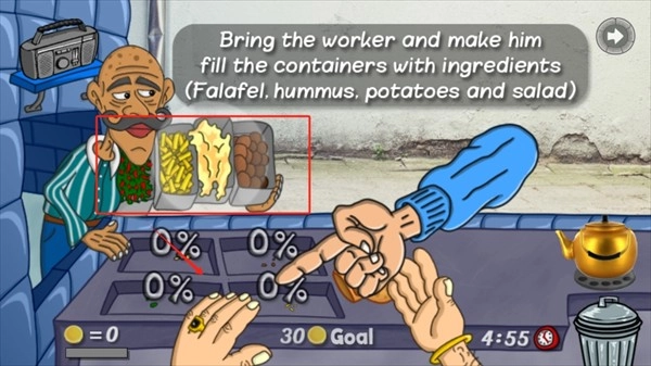 4、点击时,依据食材左上角蓝色方框内显示的数量操作,数量是1就点击1次,数量是2就点击2次,依此类推。