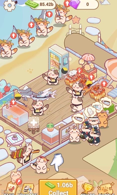 2、猫咪美食海滩最新版引领猫队探寻岛屿深处的秘密,发掘珍贵材料,同时解锁全新区域与装饰。