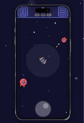 1、控制飞船在屏幕上移动,躲避敌人的攻击。