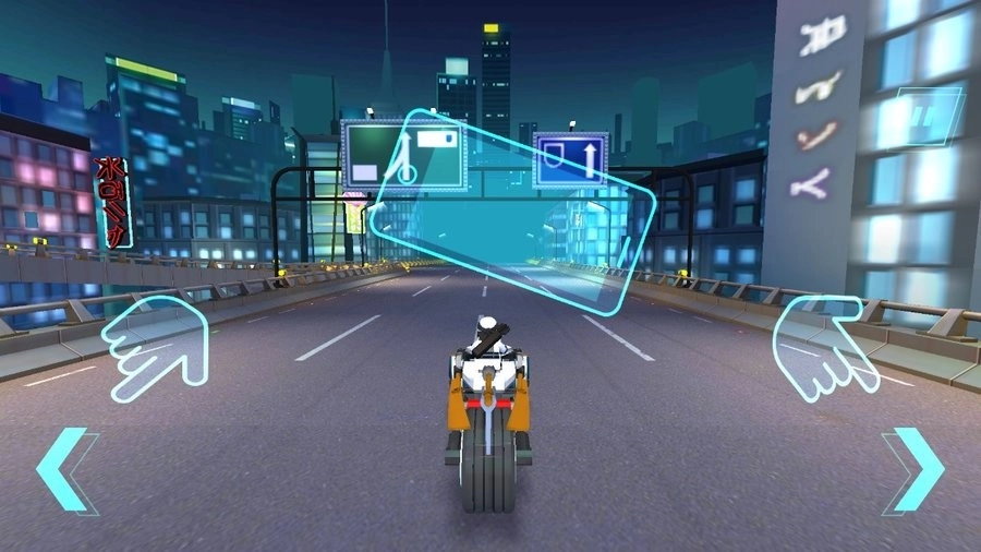 2、赛道探索收集:骑行时留意赛道两侧的隐藏区域,收集散落的乐高积木,积累到一定数量可兑换摩托车升级零件、角色皮肤等奖励。