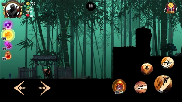 2. 在游戏操作界面中,左侧用于控制左右移动,右侧设置有跳跃、攻击、冲刺以及隐身技能的按钮。