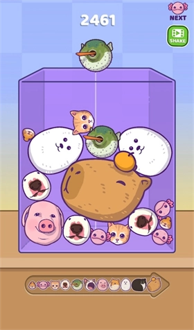 4、水豚模式:在此模式下,你的使命是将可爱的水豚进行合并,打造出最为可爱且独具特色的水豚。探索各种独特的组合,像是蜜蜂水豚、甜甜圈水豚、酷炫的水豚,还有水豚与乌龟、水豚和鹈鹕、水豚跟鳄鱼这样的组合。