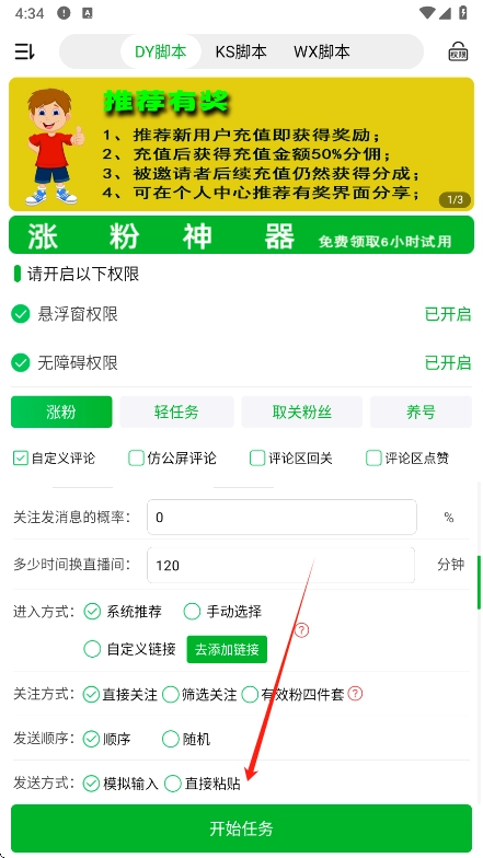 4、然后回到首页进行相关的脚本设置,点击开始任务就可以了