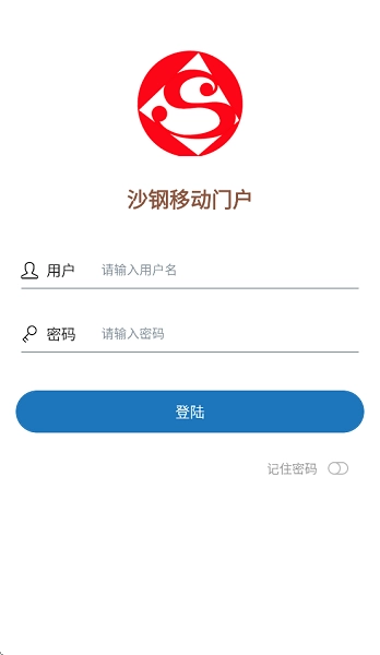 打开沙钢移动门户APP,在相应位置输入账号与密码。账号是8位的工号,密码初始设定为123456 ,完成输入后点击登录按钮。