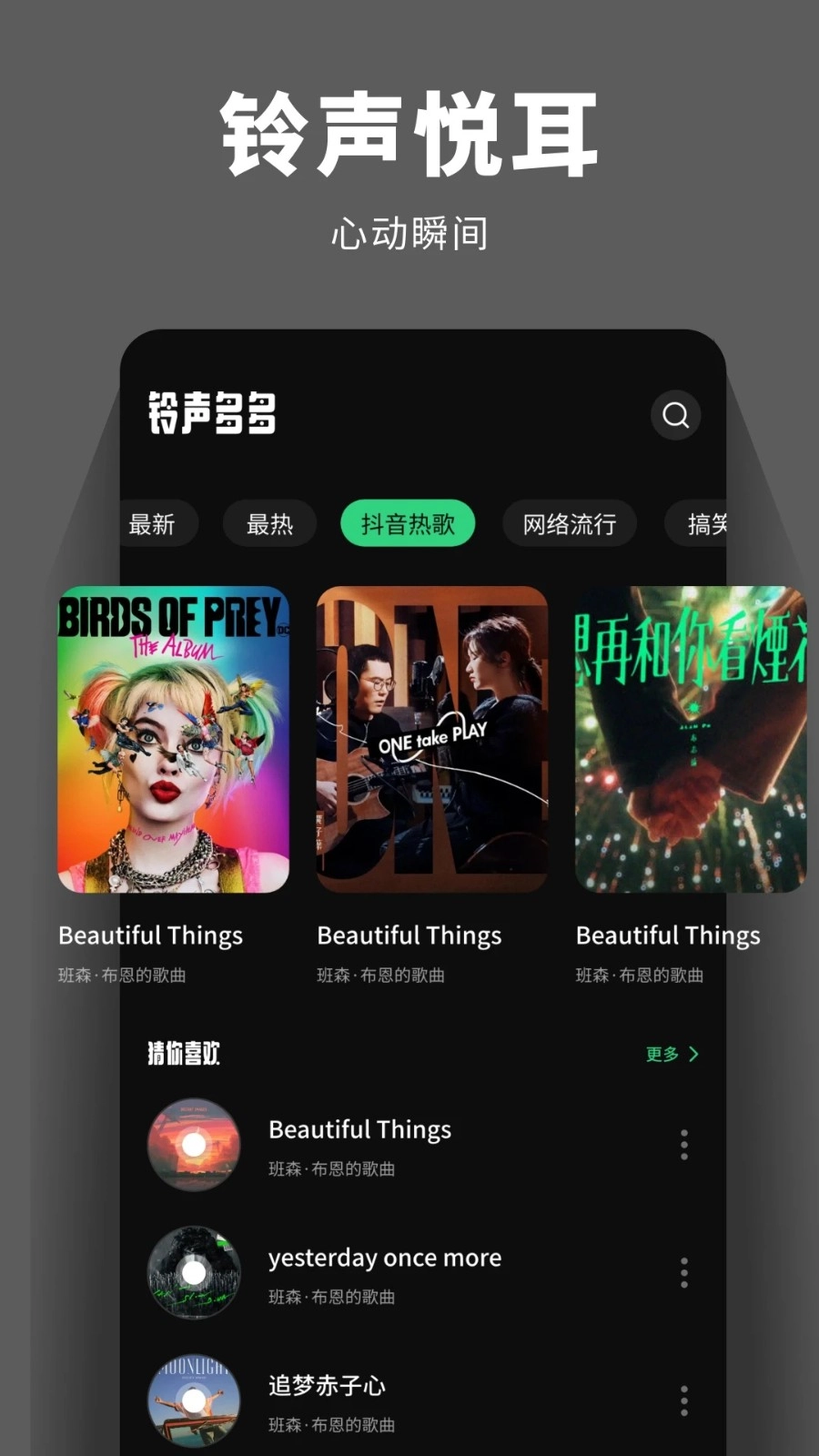 千千精听是一款集来电铃声与图片编辑多种功能于一身的软件。它拥有海量好听的铃声,不仅免费更新,而且种类繁多,能够充分满足用户的个性化需求。用户可以按照自己的喜好挑选铃声,并轻松设置专属铃声。此外,该软件还具备图片滤镜功能,搭配多样的编辑工具,帮助用户打造出独特的视觉效果,满足日常图片编辑需求。