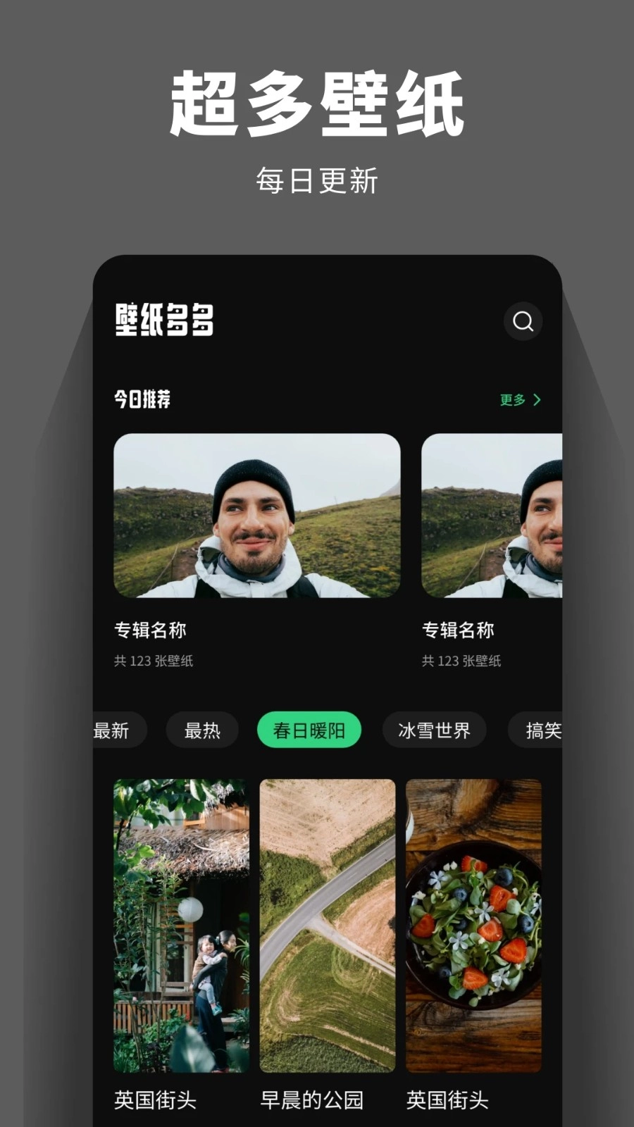 3、在壁纸中有很多不同的主题壁纸,可以根据不同的分类进行选择。
