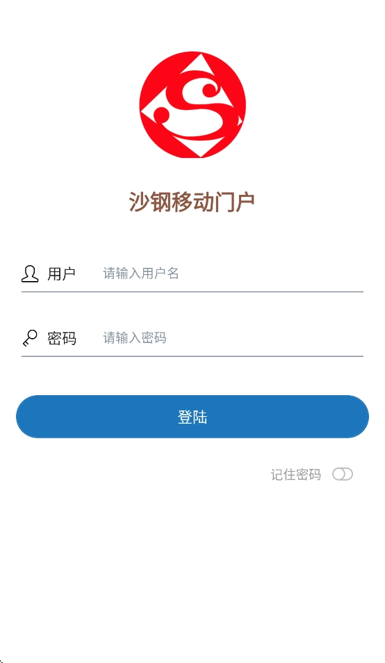 打开沙钢移动门户APP,在相应位置输入账号与密码。其中,账号是8位的工号,密码初始设定为123456 ,完成输入后点击登录按钮。