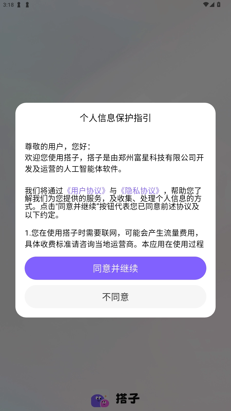 1、在fxxz下载安装dazi ai,点击同意进入