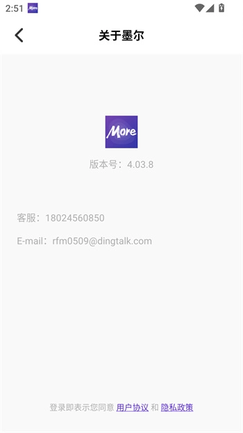 6、点击我的页面下方的设置中的关于墨尔,可以查看隐私政策与用户协议。