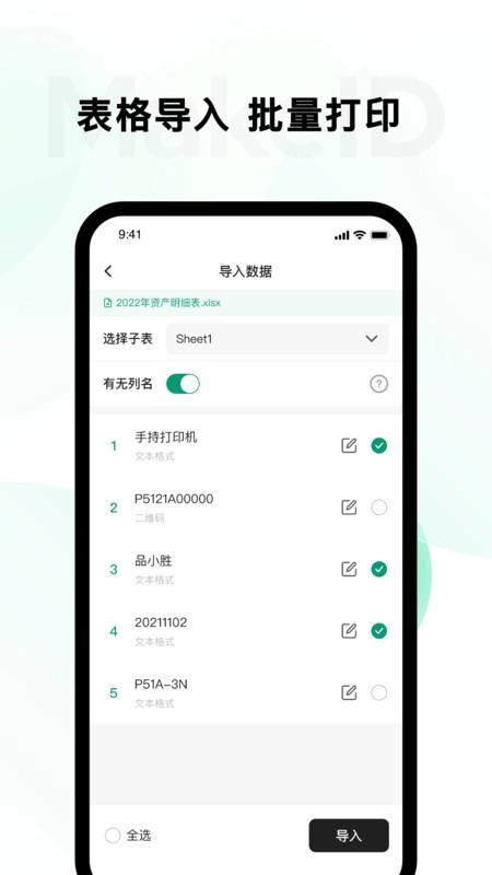 支持导入excel批量打印;