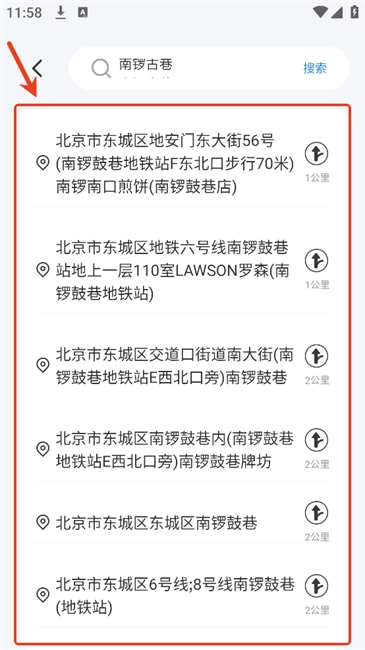 4.输入地点后点击“搜索”