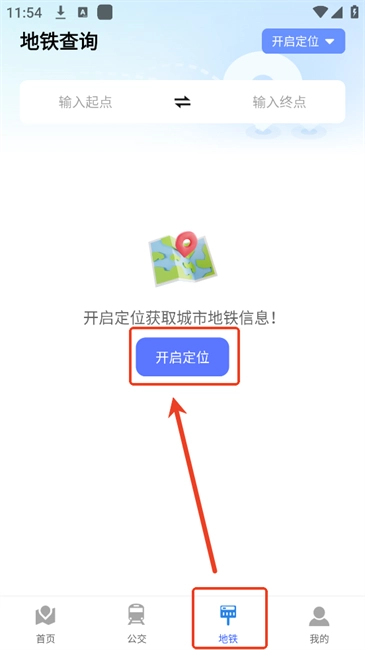 1. 首先进入【地铁】专区,接着点击“开启定位”。