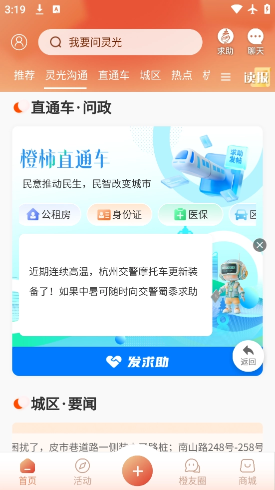 1、橙柿互动是一款专门为杭州市民精心打造的APP。