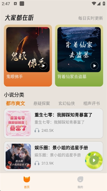 番猫免费听书app最新版本,为你精心整合海量有声读物资源。无论你喜爱热门小说、经典的相声评书,还是热衷于最新影视同人作品、精彩广播剧,番猫都能全方位满足你的听书需求。感兴趣的朋友,赶快下载,开启属于你的听书之旅吧!